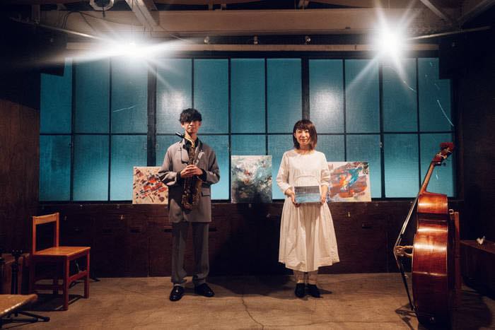 サウンドアーティスト/サックス奏者/アクリル画家として活動する塙正貴と、ベーシストの小西佑果によるユニット。
